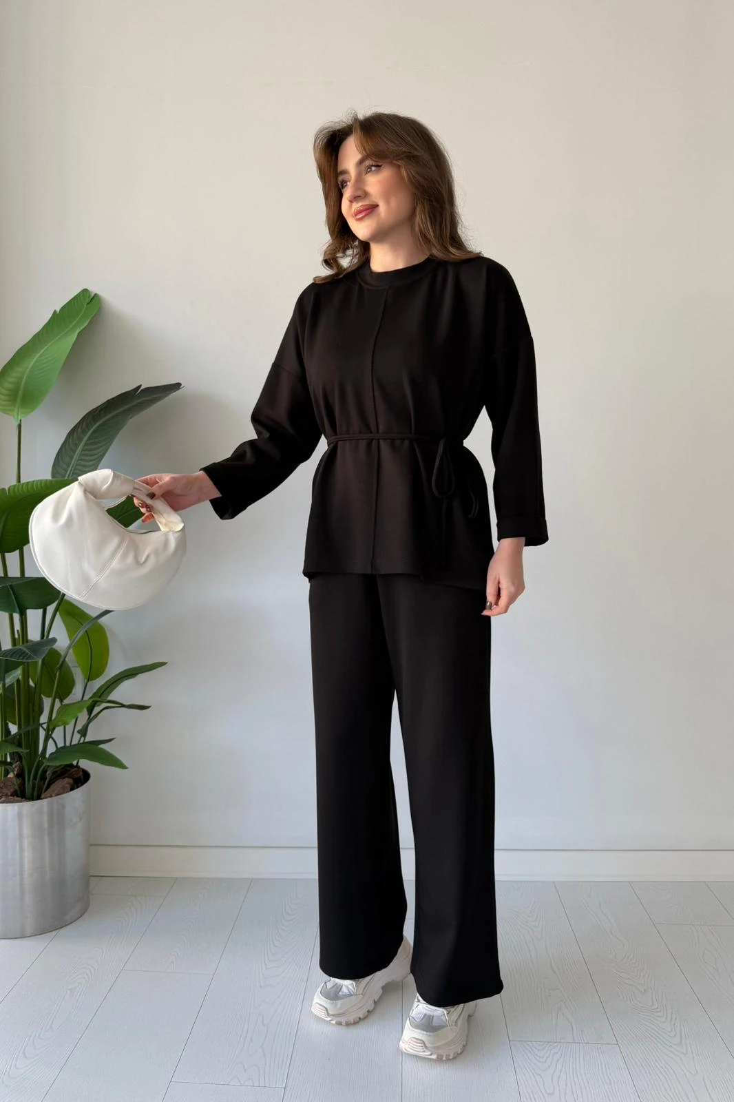 هاد الأنصوبل مصمم خصيصا باش تكوني مرتاحةفالعمل ولا فالخرجات وفدراسة وحتى فالمنزل ولا كتطيبي، هاد اللباس غيعطيك الراحة اللي بغيتي وفنفس الوقت غتبقاي شيك وأنيقة. القماش ديالو ميمتصش العرق ومينشفش بزربة، يعني دايما غتكوني فريش ونضيفة.